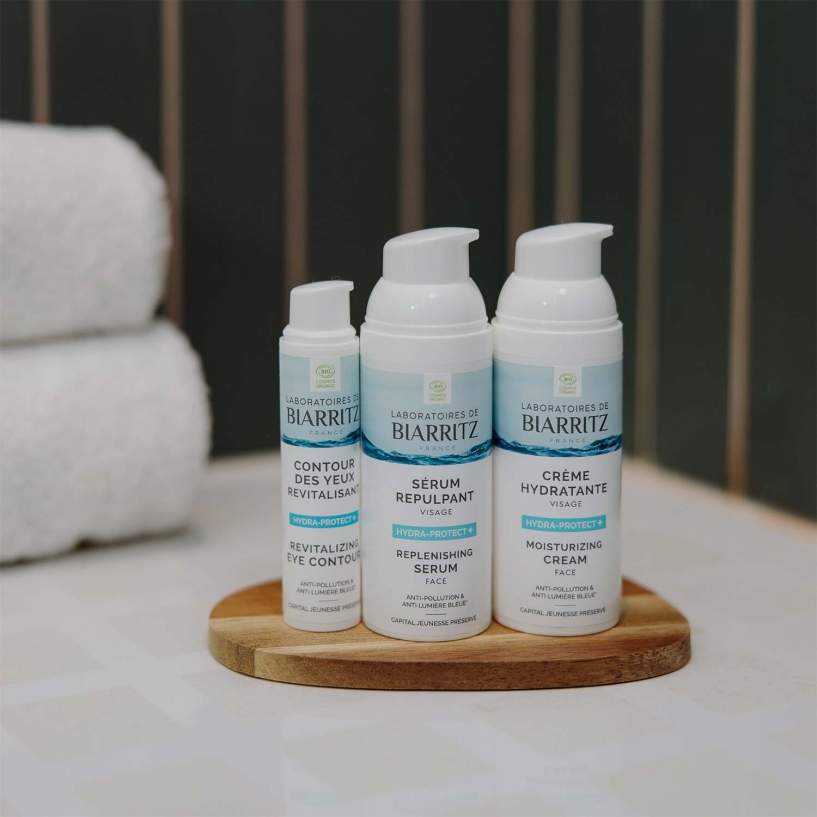Die bio-zertifizierte Hydra-Protect+ Gesichtspflege wurde für Ihren Alltag entwickelt und von dem Ozean inspiriert, den wir so sehr lieben. Sie sorgt für eine strahlende Haut und Wohlbefinden.