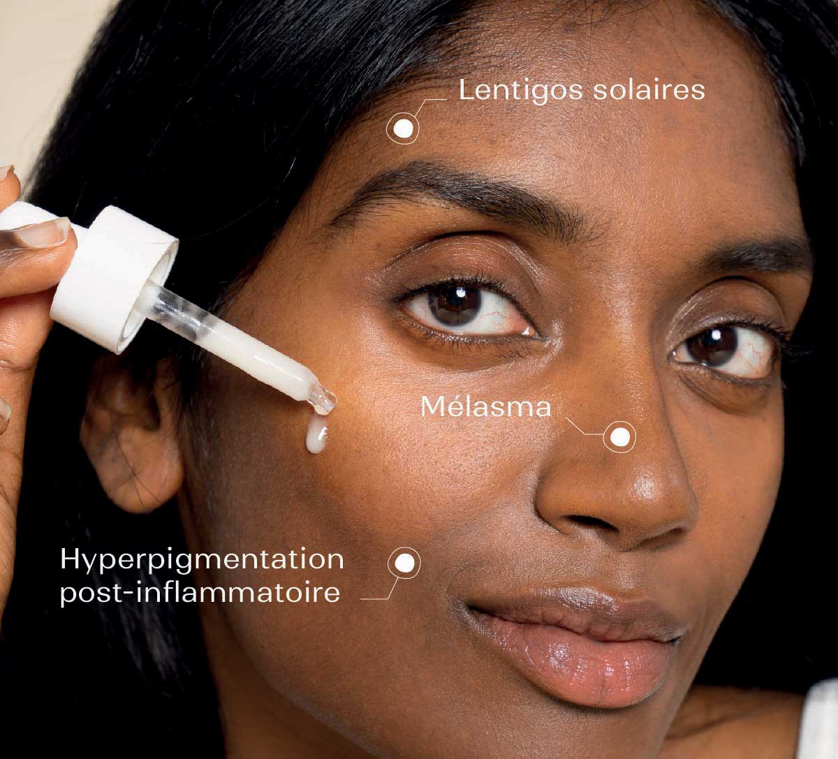 ² Während der Anwendung des Anti- Pigmentflecken-Serums. Klinische Studie über 56 Tage, zweimal tägliche Anwendung des Serums bei einer multiethnischen Gruppe von 30 Testpersonen mit allen Arten von Pigmentflecken, von denen 50 % empfindliche Haut hatten.