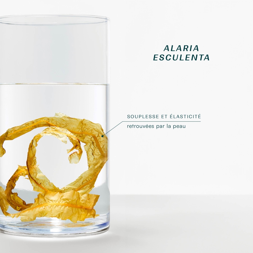 - Alaria esculenta, an extract of kelp from the Atlantic coast: helps the skin regain suppleness and elasticity.