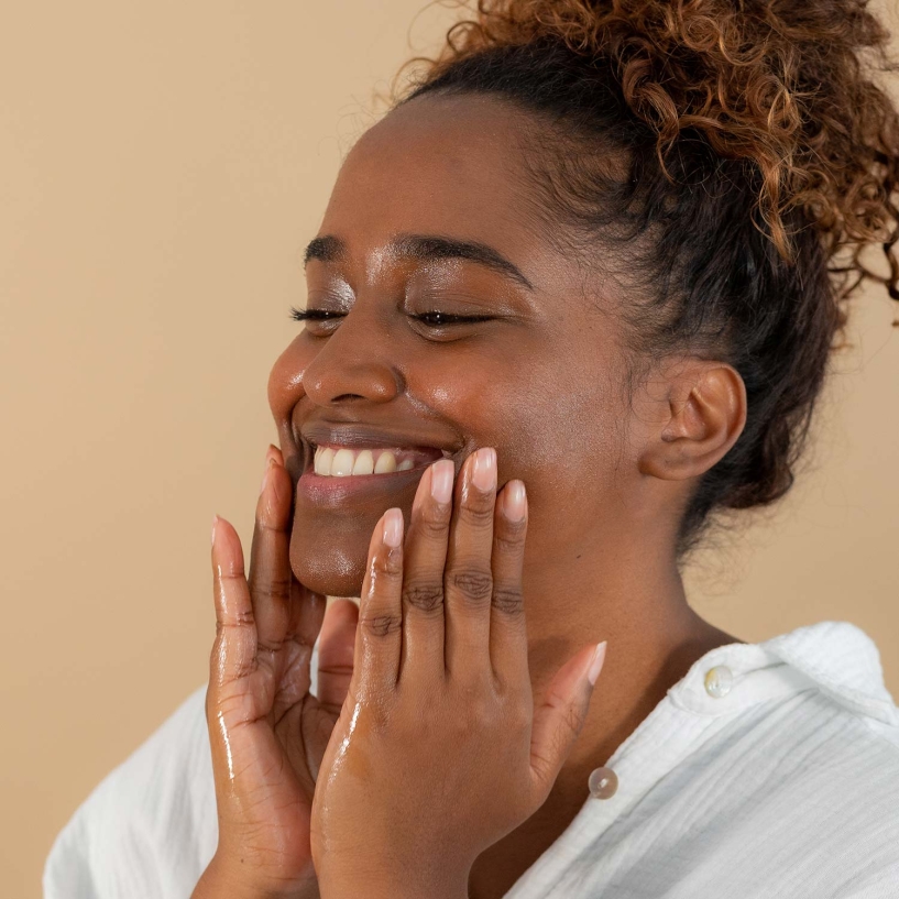 Warm the cleansing oil in the palm of your hands and massage it into dry skin on the face, the neck, the eyes, and the lips.Next, emulsify it with a small amount of water, then rinse thoroughly.Does not sting the eyes. All skin types.
