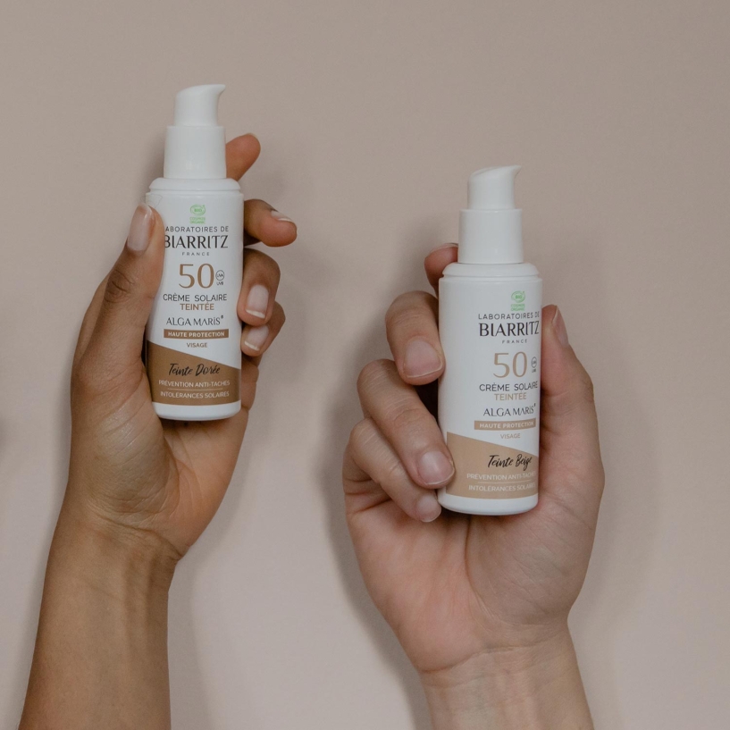 The SPF50 Tinted Face Sun Cream is both effective sunscreen that prevents unsightly pigmentation (spots, pregnancy mask, scars, pimples, post-cosmetic surgery...) and skin-perfecting skincare for daily use. It provides immediate UVA/UVB radiation protection and blue light¹ thanks to a unique combination of mineral screens and Alga-Gorria®, a patented extract of red algae from the Basque coast.