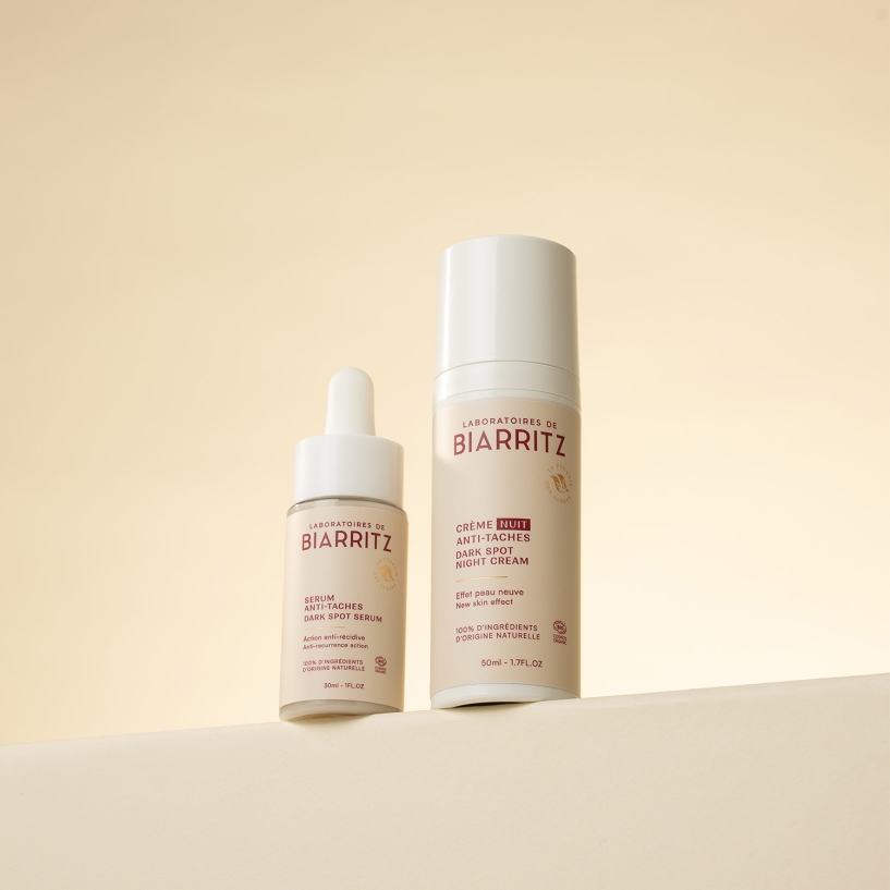 Formulated with an exclusive trio of algae, including Alga-Biotic – patented by Laboratoires de Biarritz – the Dark Spot Correcting Serum and Dark Spot Correcting Night Cream provide a comprehensive solution for dark spots.